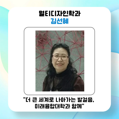 ¹Ì·¡À¶ÇÕ´ëÇп¡ ´Ù´Ï¸é¼ »õ·Î¿î ²ÞÀÌ »ý°å´Ù. ÄÄÇ»Å͸¦ Ȱ¿ëÇÏ¿© µ¿¾çÈ ÀÛ°¡·Î¼ ´õ Å« ¼¼°è¸¦ ¸¸³ª´Â °ÍÀÌ´Ù. ¿Â¶óÀο¡ ÀÛ¾÷¹°À» ¾÷·ÎµåÇϰí, ´Ù¾çÇÑ µðÀÚÀÎ ÅøÀ» ÅëÇØ ÀÛ¾÷À» È®ÀåÇÑ´Ù¸é ´õ ¸¹Àº »ç¶÷µé¿¡°Ô ÀÛǰÀ» °ø°³ÇÒ ¼ö ÀÖÀ» °ÍÀ̶ó´Â Èñ¸Áµµ °¡Áö°Ô µÇ¾ú´Ù. ¾ðÁ¨°£ ³»°¡ ±×¸° ±×¸²À¸·Î ´õ Å« ¼¼°è¿Í ¼ÒÅëÇÒ ¼ö ÀÖÁö ¾ÊÀ»±î. ÀÌ·¸µí ¸íÁö´ëÇб³ ¹Ì·¡À¶ÇÕ´ëÇÐÀº ³»°¡ °¡Áø ¿ª·®À» ¹ÙÅÁÀ¸·Î »õ·Î¿î °¡´É¼ºÀ» ¿¾îÁÖ¾ú´Ù. ¸¹Àº ÇпìµéÀÌ ¹Ì·¡À¶ÇÕ´ëÇаú ÇÔ²² ´õ Å« ¼¼°è·Î ³ª¾Æ°¡´Â ¹ßÆÇÀ» ¸¶·ÃÇÏ¿´À¸¸é ÁÁ°Ú´Ù.